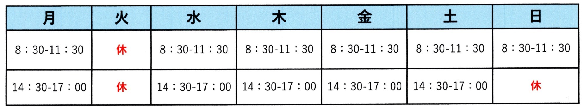| 午後 | 〇 | - | 〇 | 〇 | 〇 | 〇 | - |